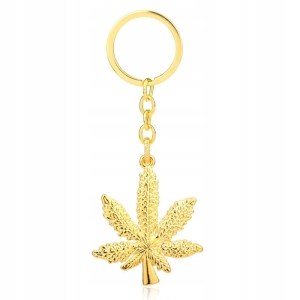 Złoty breloczek do kluczy trawka liść marihuany na skręta na wyluzowanie